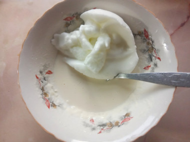 В это время из воды, муки, растительного масла и соли приготовьте жидкое тесто, введите в него предварительно взбитые белки.