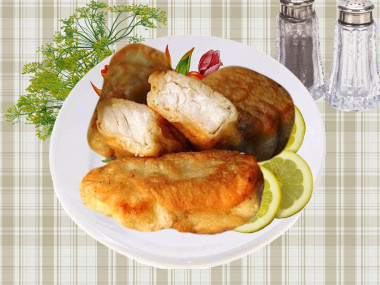 После того, как рыба пропиталась, мы берём кусочки рыбы обмакиваем в тесто и жарим на хорошо разогретой сковороде в большом количестве растительного масла. Подавать рыбу лучше с картофельным пюре.