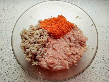 Только котлеты я не обжаривала, а запекла, т.к. дочке нельзя жареное. Фарш у меня был из свинины и куриной грудки, мне кажется, это наиболее сбалансированный вариант. Лук и чеснок прокрутила на мясорубке вместе с мясом. Морковку натерла на средней терке. Перловку предварительно замочила на ночь, а затем отварила до мягкости. Чем мягче перловка, тем незаметнее она в котлетах).