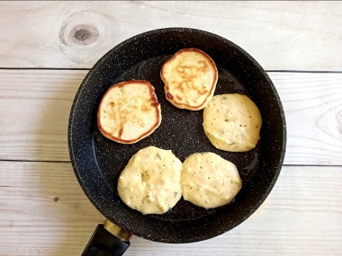 Готовые оладьи становятся аппетитного золотистого цвета.