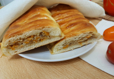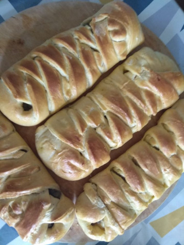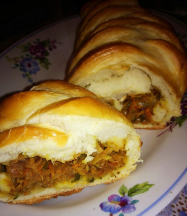 Очень красивые пироги-плетенки!Но начинка не мое! Предпочитаю капусту просто отварить в молоке+сливочное масло+вареные яйца или мясную говядина+свинина.