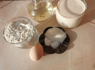 Калорийность продуктов: Ряженка, Вода, Яйца, Сахар, Пшеничная мука, Растительное масло, Сода, Соль
