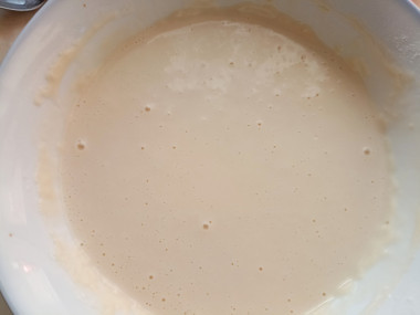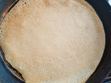 Оставьте тесто постоять минут на 15. Перед началом выпекания отрегулируйте густоту теста до желаемой консистенции с помощью муки или воды. Для тонких блинчиков тесто должно быть достаточно жидким.