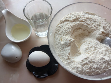 Аккуратно перемешайте воду с яйцом и потихоньку, подсыпая муку с краев, а затем оставшуюся, замесите мягкое, не липкое и однородное тесто. Сформируйте из теста шар, положите в миску и покройте. Дайте тесту постоять на столе в течение 30-40 минут, чтобы оно стало мягким. Муки может понадобиться больше или меньше, ориентируйтесь на консистенцию теста. Подробнее о свойствах муки можно узнать в статье под рецептом.