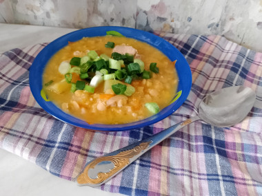 Начав готовить суп, в первую очередь промыла горох и поставила его варить. У меня был колотый горох, поэтому предварительно я его не замачивала.
