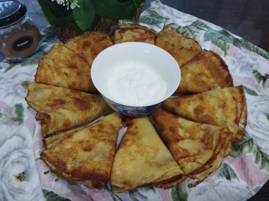 Приготовила блины на кислом молоке с дырочками. Такой способ приготовления теста для блинов пробовала делать впервые. Часть из всего количества молока у меня была скисшей до состояния кефира, другая часть - ещё имела консистенцию молока, но уже сворачивалась при кипячении. Я всё смешала при взвешивании. Тесто получилось однородным и очень жидким. Поначалу я даже подумала, что придётся добавлять муки. Но попробовала выпекать и получилось хорошо. Во время приготовления делала блины разной толщины - более тонкие получались с большим количеством дырочек, более толстые было легче переворачивать на сковороде. Кстати, эти блины мне пришлось выпекать до готовности гораздо дольше по времени, чем обычные. Блины получились жирненькие (в следующий раз попробую добавить растительного масла в тесто на ложку меньше, хотя с учетом того, что тесто на кислом молоке, наверно, нужно масла много). Что касается вкуса, то мне такие блины очень понравились! Они отличаются от тех, что выпекают на обычном молоке, не то, чтобы лучше или хуже - они просто другие, более влажные, тяжёлые, очень сытные. Мы ели их без всяких начинок и наполнителей со сладким чаем! Получился очень вкусный завтрак! Рецептом буду пользоваться ещё, особенно, если скиснет молоко))) Спасибо!
