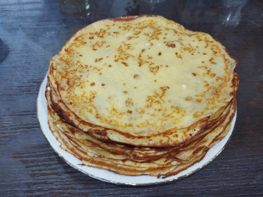 Готовые блины складывайте друг на друга, по желанию смазывая края растопленным сливочным маслом.