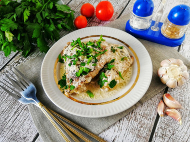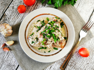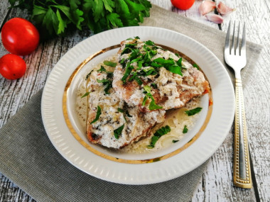 Курица в сметане с чесноком в духовке по этому рецепту получилась очень нежная. Мясо пропиталось ароматным сметанным соусом. Моя семья осталась довольна. Большое спасибо за рецепт!