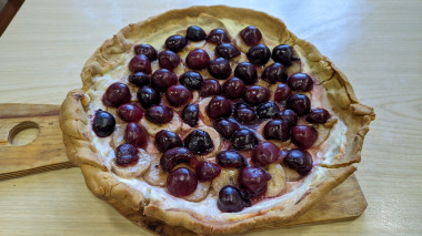 Решил вместо малины добавить в пирог банан и черешню.