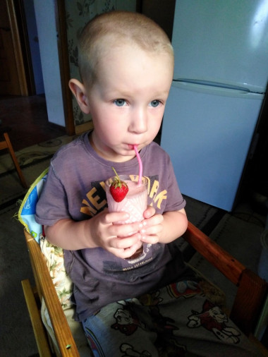 Потрясающий рецепт! В летний период, когда есть свежая и ароматная ягода, готовить лёгкие и освежающие напитки одно удовольствие. Понравился рецепт смузи клубника банан. Решила приготовить для всех на завтрак полезный и витаминный напиток из свежей ягоды. Собрали мы домашнюю клубничку, купили бананы, молоко и сахар практически всегда есть) Решила сделать смузи, что очень быстро, имея погружной блендер. Почистила клубнику и бананы, уложила в стакан и перебила в густое пюре. Добавила сахарный песок и молоко 2,5% жирности, взбила и получился потрясающий напиток средней густоты. Смузи по этому рецепту не жидкий, но и не густой. Сахарного песка добавляла по рецепту, получился напиток в меру сладкий и не приторный. Шикарное сочетание клубники и банана привело всех в восторг. Разлила смузи по стаканчикам, украсила клубничкой и первую пробу снимал мой ребёнок. По его словам этот напиток "ням-ням!". И этим всё сказано) Устами младенца глаголит истина!