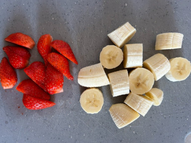 (Взяла меньшее количество фруктов, так как мне показалось, смузи получится слишком много, и я его не выпью.)