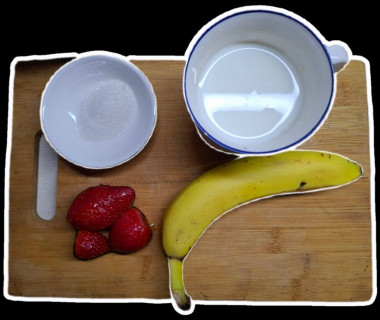 Как сделать смузи из клубники с бананом? Подготовьте для этого необходимые ингредиенты. Пропорции можно поменять в любую сторону по своему вкусу. Бананы выбирайте наиболее спелые и ароматные. Клубнику можно использовать как свежую, так и замороженную. Но замороженную необходимо предварительно разморозить.