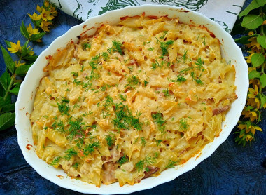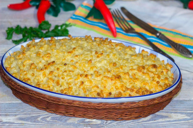 Рожки в духовке, да ещё и с белым соусом, это так вкусно! И готовить просто и быстро. А ещё это прекрасный способ спрятать переваренные макароны, и такое бывает) Соус я очень люблю, он такой нежный! Лучше всего размешивать его венчиком и нужно следить за ним, он быстро густеет. Сыр я не только добавила в соус, но и немного присыпала им верх. Когда перемешала макароны с соусом поняла, что нужно добавить что-то для сытности. У меня в морозилке был пакетик с запеченым филе курицы, уже нарезанное. Я его немного разморзила и добавила к общей массе. Запекала как и в рецепте 30 минут. Запеканка отлично нарезается на кусочки даже в горячем виде, все ингредиенты хорошо скрепились между собой. Это очень вкусно и сытно. Запеканка нежная, сливочная, очень приятная.