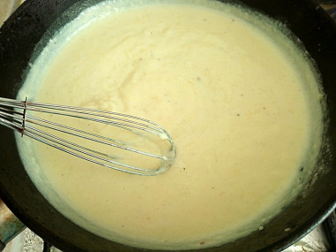 Хорошо перемешайте до полного расплавления сыра. Снимите соус с плиты.