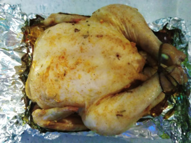 Сегодня весь день идет дождь, солнышко спряталось за тучки, а хочется чего-то яркого, горячего и вкусного. Решение нашлось - запекла курочку. Ее румяная хрустящая корочка отлично поднимает настроение! А аромат то какой! Очень люблю мариновать курицу в маринаде с добавлением соевого соуса. Мясо получается мягким, сочным, нежным и приобретает красивый цвет. Курицу замариновала с утра, а вечером запекла. В фольге время запекания увеличивается, но зато курица выходит не сухой. Спасибо автору за такой замечательный рецепт курочки!