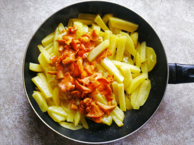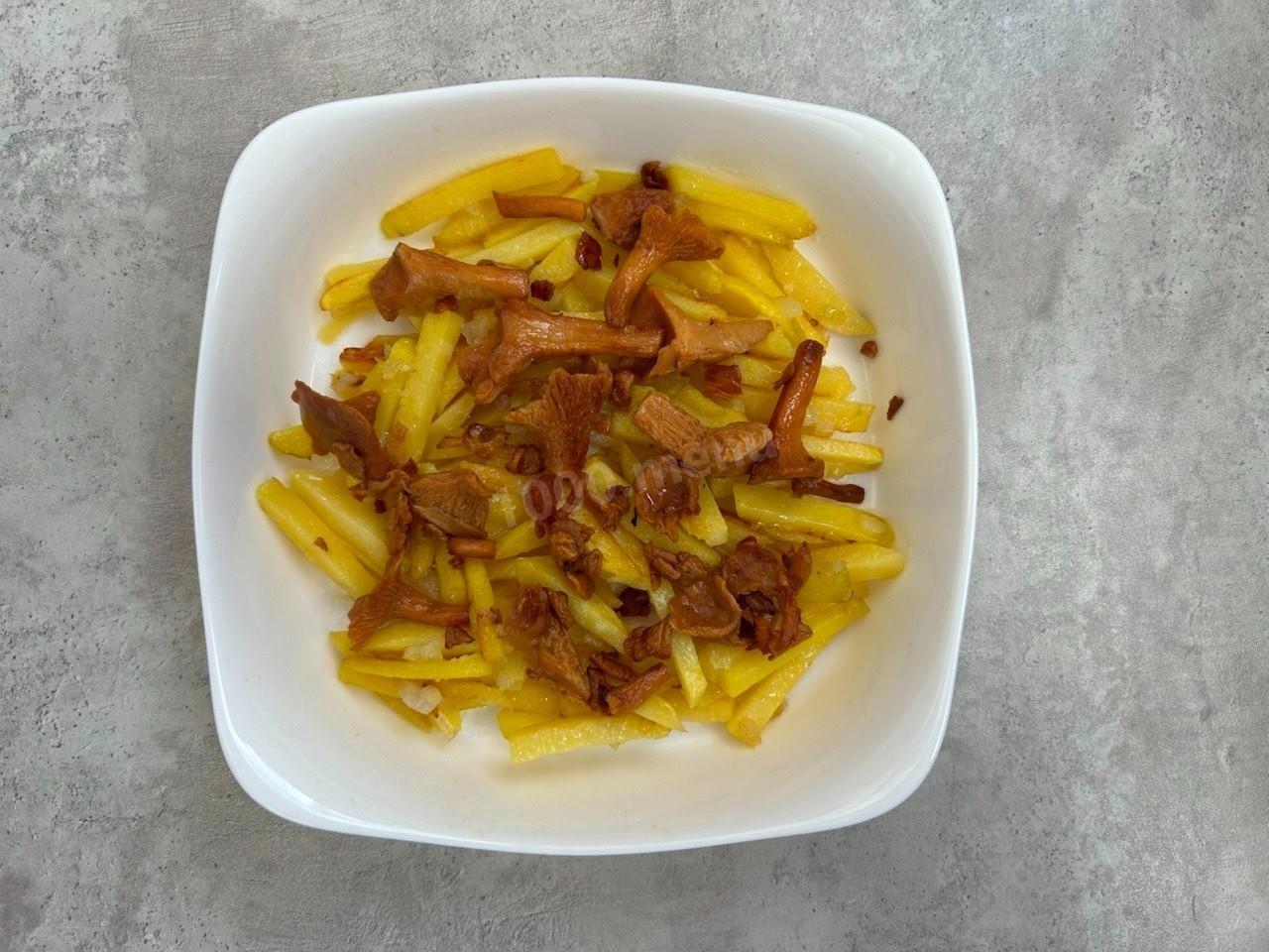 Поверх картофеля выложите обжаренные лисички.