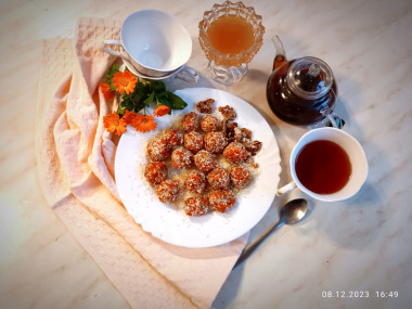 Думаю в следующий раз не буду заморачиваться с равномерной выкладкой и формированием рулета, а просто соединю все вместе и скатаю шарики.