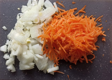 В это время мелко нарежьте лук и натрите на терке морковь.