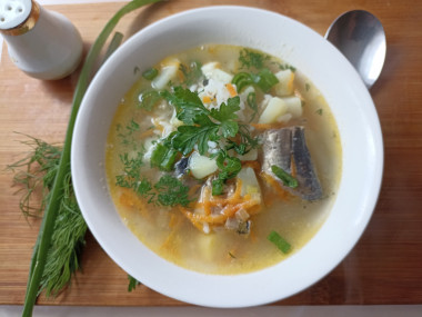 Нужно было быстро сварить суп и идеальным вариантом оказался рыбный суп из консервов сайры с рисом и картошкой.