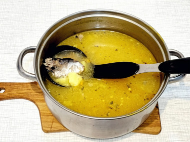 Сварила рыбный суп из консервы с рисом. У меня была консервированная в собственном соку сардина. Из специй я использовала