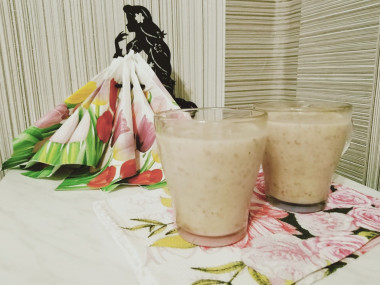 Пробейте ягоды с бананом до однородного состояния. У вас получится густой напиток, практически ягодное пюре. Вот теперь влейте остатки молока, чтобы довести смузи до желаемой консистенции. Вообще смузи, в отличии от коктейля, довольно густой напиток, но здесь смотрите по своему вкусу — любите пожиже, влейте молока побольше. Еще раз пробейте все вместе.