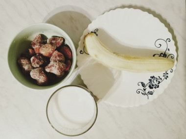Как сделать смузи из замороженных ягод с молоком в блендере в домашних условиях? Подготовьте продукты. Ягоды вы можете взять любые, у меня клубника. Единственное условие — они должны быть без косточек. Размораживать их предварительно не нужно. Банан выбирайте спелый, но не сильно перезрелый, без коричневых пятен. Молоко подойдет любое, не только коровье, но и растительное без лактозы. Также вместо молока вы можете взять йогурт или кефир.