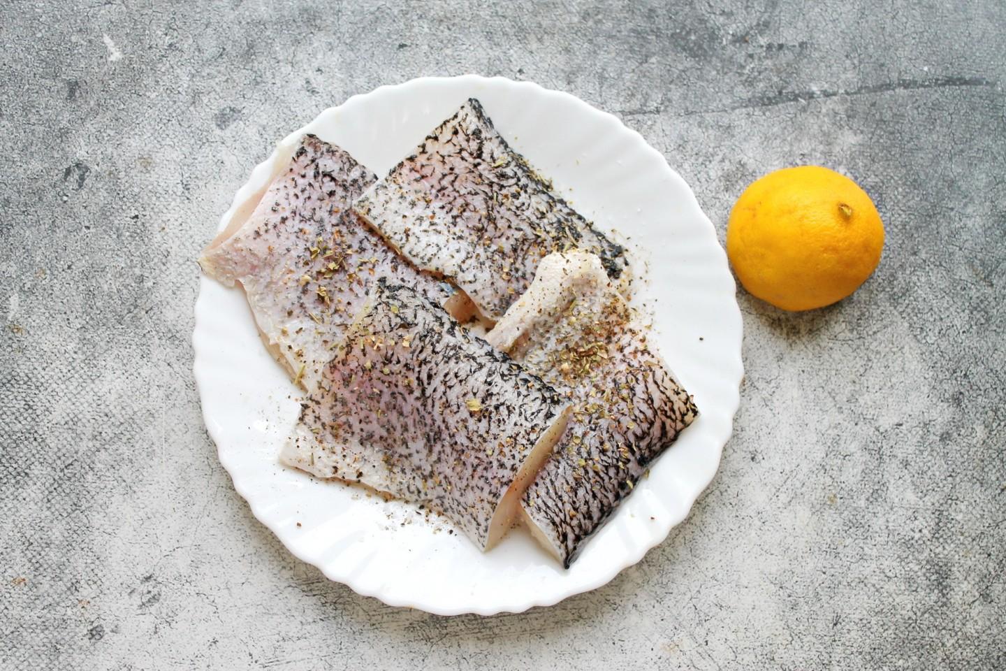 Куски рыбы посолите, поперчите, добавьте специи и полейте лимонным соком. Сок удалит запах тины, который иногда бывает у этой рыбы. Перемешайте и оставьте на 10 минут. Включите духовку на 180 градусов.