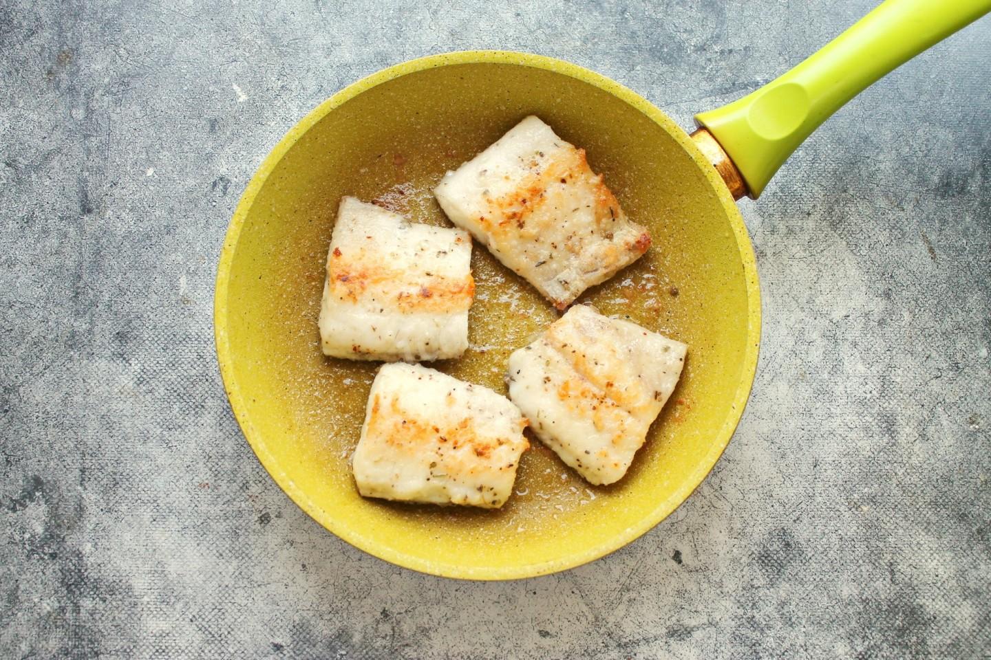 В сковороду налейте растительное масло и разогрейте на среднем огне. Каждый кусочек щуки обваляйте в муке и обжарьте примерно 1-2 минуты с каждой стороны до золотистой корочки. Переложите рыбу в форму для запекания. Какое растительное масло взять и какая сковорода лучше всего подойдет для приготовления можно узнать под шагами ниже.
