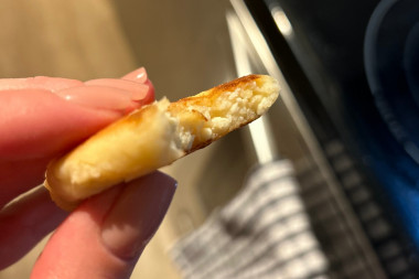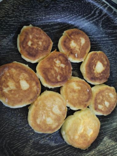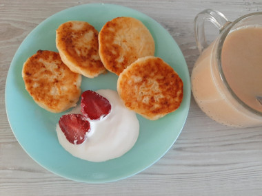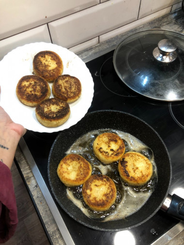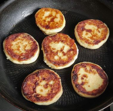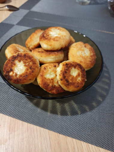 Сделала сырники по Вашему рецепту, очень понравилось! Быстро, вкусно, недорого (что немаловажно!), Жарила на медленном огне под крышкой.