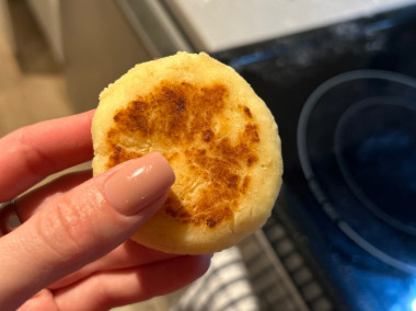 Если у кого-то не получились сырники, то обязательно обратите внимание на консистенцию творога который берете. Он должен быть рассыпчатым( я брала 9-ти %. Когда все смешали может рассыпаться, поэтому я немного ещё вымешивала руками.