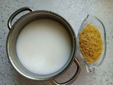 Как сварить молочную кашу с вермишелью вермишелевую? Возьмите все необходимые ингредиенты.