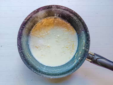Возьмите кастрюлю или сотейник с толстым дном, чтобы молоко не пригорело. Влейте молоко в сотейник и доведите до кипения периодически помешивая, посолите, размешайте. При желании можете добавить сахар. Молоко можете брать любой жирности, главное, чтобы оно было свежее и качественное. Также можете взять и домашнее молоко, на нем будет еще вкуснее.