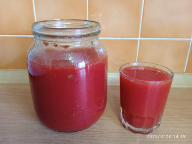Мне очень понравился рецепт томатного сока без стерилизации на зиму. Я люблю, когда в соке есть мякоть и нет семян и шкурок. У меня помидоры были кисловатые, поэтому добавила сахар в том же количестве, что и соли.