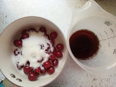 Как сделать вишню в вине? Подготовьте ингредиенты по списку. Вишню можно использовать свежую или замороженную, предварительно разморозив ее при комнатной температуре. Вино для такого десерта подойдет красное сладкое, полусладкое или сухое. Набор пряностей также можно изменить по своему вкусу. Ягоды вишни тщательно переберите, удалите листья, мусор, порченные ягодки. Промойте вишню под проточной водой и откиньте на дуршлаг, чтобы с ягод стекла вода.