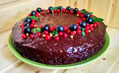 Этот торт я готовлю не в первый раз. Всей моей семье он очень нравится. В данном рецепте я поменяла самый минимум ингредиентов. Вместо оливкового масла добавила подсолнечное без запаха и в глазури не использовала корицу. Корж у меня выпекался ровно час. Такой пышный пирог получился и вкус соды совсем не чувствуется! Торт на вкус очень шоколадный, внутри влажноватый, в пропитке не нуждается совершенно. Вкусный, мягкий и большой) Однозначно рекомендую этот рецепт к приготовлению!