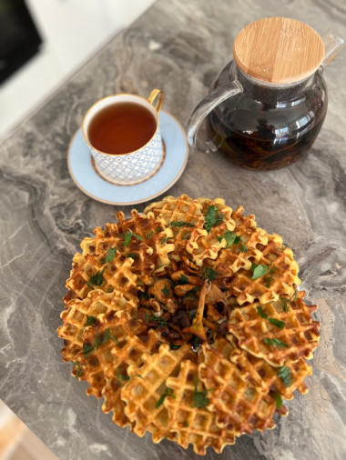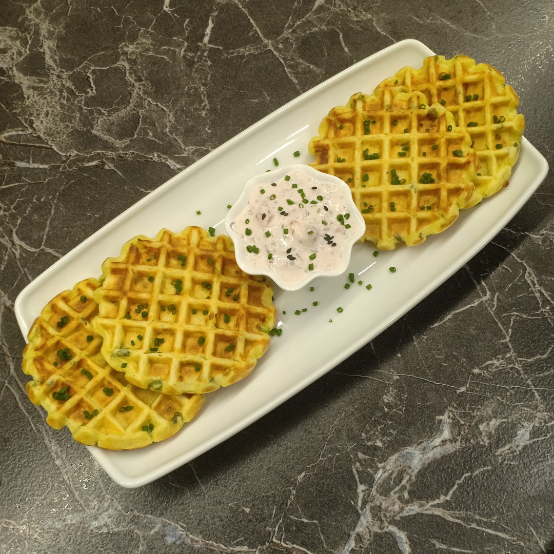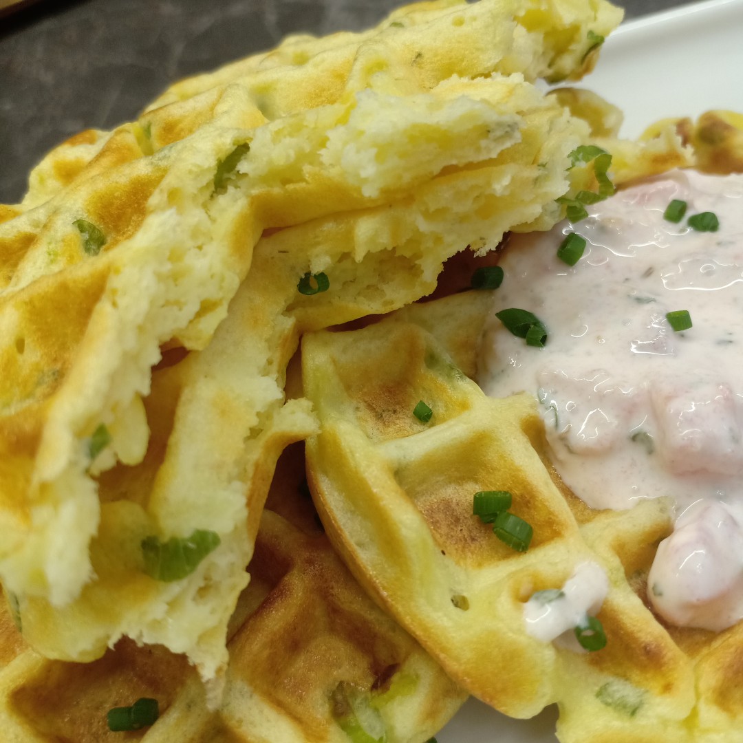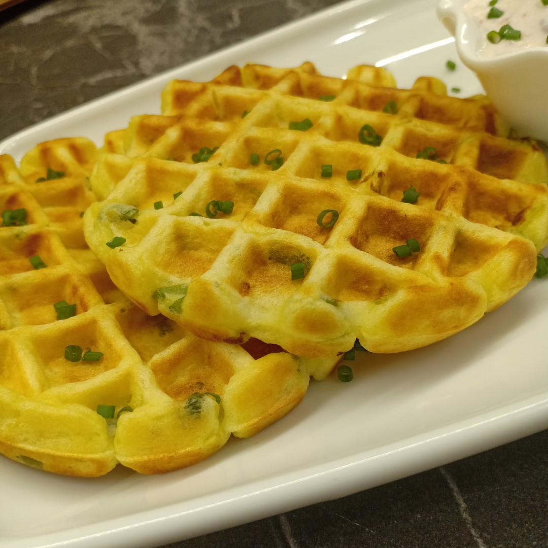 Супер рецепт. Я делаю пюре в планетарном миксере с насадкой весло, и сразу из 2х килограмм картошки. Делаю вафли когда убираюсь на кухне и в гостиной, на фитнес часах таймер 5 мин помогает не упустить время.