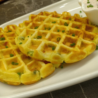 Готовые венские картофельные вафли выложите на тарелку и подайте к столу. Приятного аппетита!