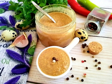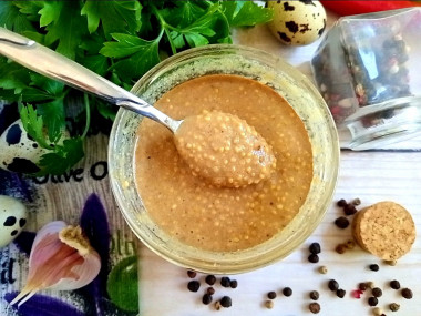 8. Теперь горчицу перекладываем в подходящую по размеру стеклянную тару и отправляем в холодильник. Через 2 суток она дозреет и будет готова к употреблению.