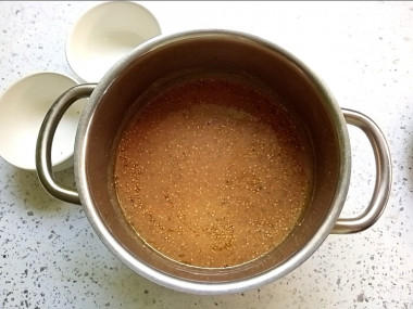 4. Кастрюлю отправляем на огонь, доводим содержимое до кипения и варим 5 минут, после чего даем остыть до тёплого состояния.