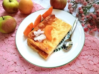 Подавала нежную запеканку с фруктами, джемом и сметаной. Очень вкусно получилось!