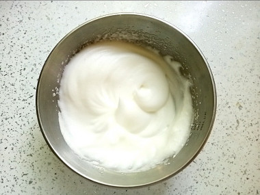 Отдельно взбейте белки в крепкую устойчивую пену. Воспользуйтесь миксером, вручную это будет долго и тяжело. Чтобы белки лучше взбились, они должны быть теплыми. Также поможет им взбиться щепотка соли.