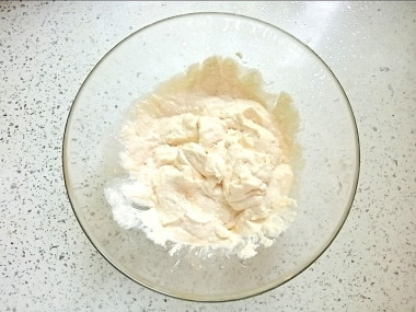 Аккуратно введите белки в творожную массу. Перемешивайте их максимально бережно, стараясь сохранить структуру.