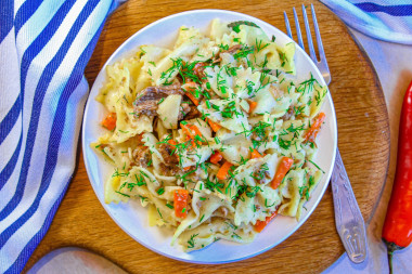 Блюдо на скорую руку сытное и вкусное. Есть еще и такой вариант - лапша с тушенкой.
