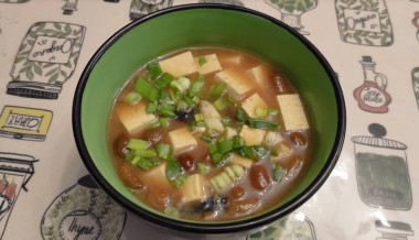 Прекрасный легкий суп из страны восходящего солнца, с ярким насыщенным вкусом, передающим колорит японской кухни. Солоноватый и интересный вкус пасты Мисо, в сочетании с легким рыбным бульоном, привкусом водорослей и зеленого лука, дополненного сыром тофу - отличный вариант для любителей восточной кухни с минимумом калорий.