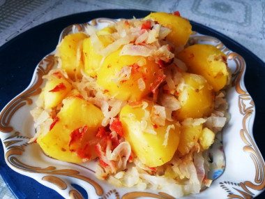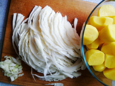 Традиционно готовлю картошку с капустой с добавлением какого-нибудь мяса - свинины или курицы. А сегодня приготовила эти овощи в качестве гарнира.