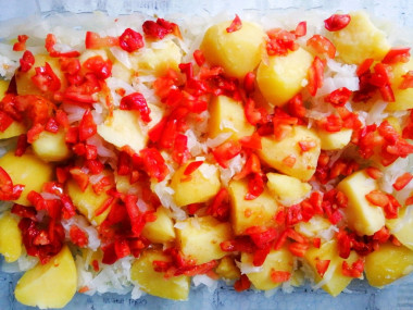 Капусту, картошку и лук предварительно отварила. И только после этого отправила их в духовку. Такой способ готовки мне понравился.