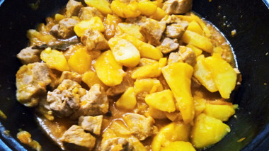 Думаю что каждый из готовящих добавит что то своё или немного изменит рецепт по себя, так и со мной. Для начала, лука было немного больше, морковь порезана кубиками как и картошка. Да как и в вышеуказанных отзывах мясо бвло с жиром. Он был срезан и вытоплен, мясо жарилось чисто на "своём". Добавил специй ( очень люблю) уцхо-сунели, острую приправу (привезли с Кавказа) и чуть прочего. В остальном вроде все рядом с рецептом. Фото в прицепе. От аромата вся семья бегала не кухню и сходила с ума, на выходе - очень вкусно. Думаю чуть подостынет, добавим чесночёк и зелень... и придётся отбиваться от соседей