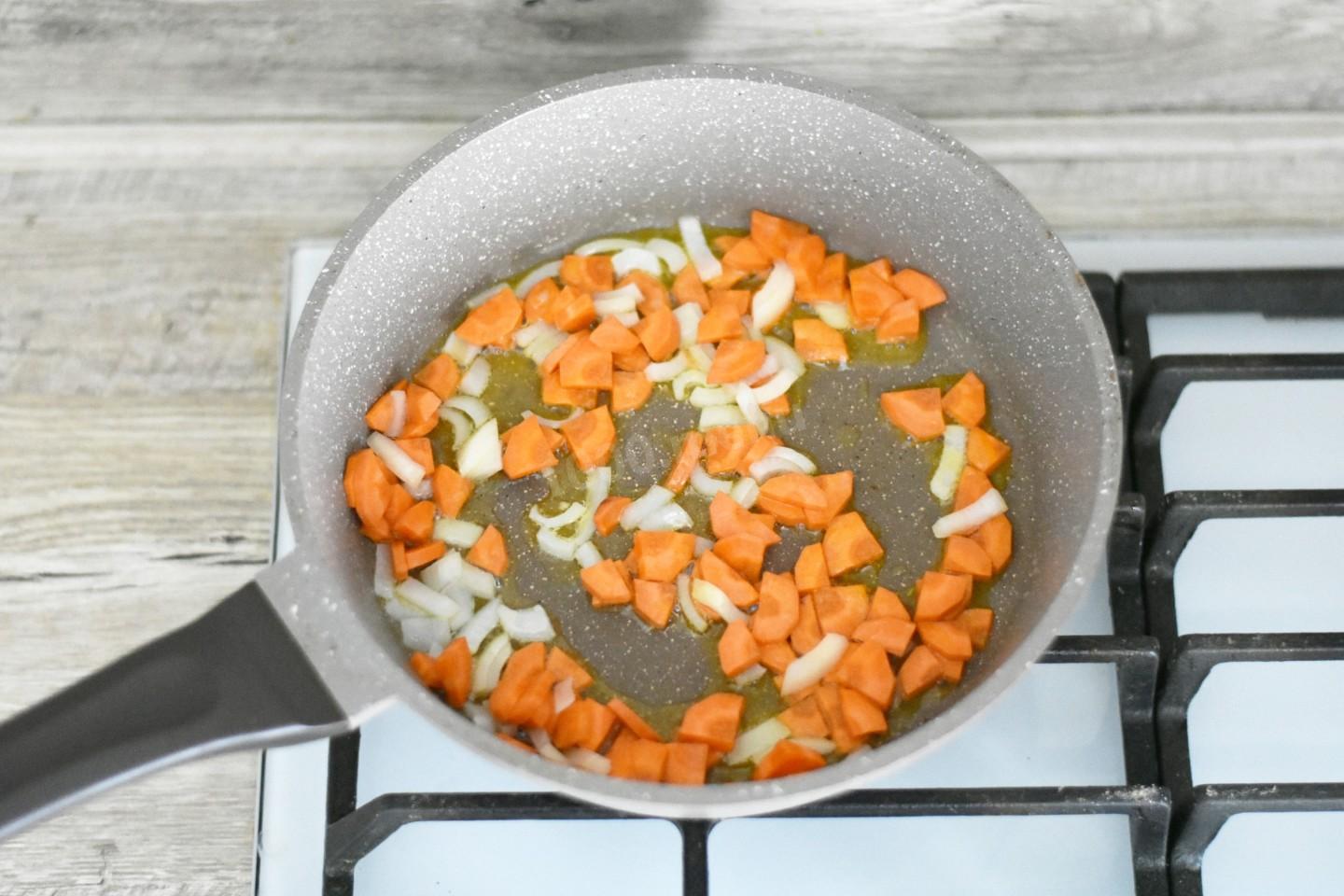 В глубокой сковороде на среднем огне разогрейте растительное масло. Выложите лук и морковь и обжарьте, помешивая, около 5 минут. О том, как подобрать идеальную сковороду и выбрать масло для жарки, читайте в отдельных статьях, ссылки в конце рецепта.