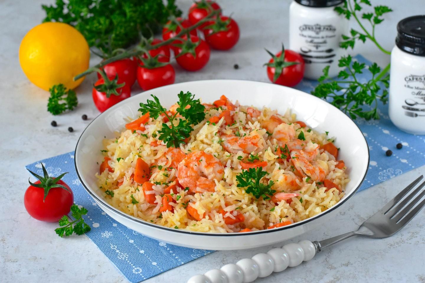 Этот плов с креветками — источник качественного белка и йода из морепродуктов. Рис басмати обладает низким гликемическим индексом и даёт длительное насыщение. Морковь и лук добавляют клетчатки и витаминов, а чеснок укрепляет иммунитет. Блюдо получается питательным, но не тяжелым, идеально для сбалансированного рациона.