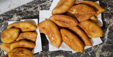 Готовые румяные пирожки выкладывайте на блюдо, застеленное бумажными полотенцами, чтоб избавиться от лишнего жира. Приятного аппетита!